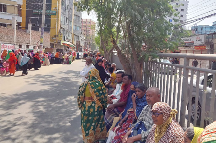 শাহেদা বা মনোয়ারাই নন শুধু। তাদের মতো অন্তত জনা বিশেক নারী বসে আছেন এই সড়কটার দুই ধারে। বেলা তখন ১টা। মাথার উপর উত্তপ্ত সূর্য। তাদেরই একজন রাবেয়া। বললেন, ‘আপনারা কি কেউ জানাইতে পারেন কখন ট্রাক আসবে? রাবেয়ার চার ছেলে-মেয়ের আলাদা সংসার।’ বললেন, ‘তারাই চলতে পারে না। তাগো কাছে যাই কী কইরা। স্বামী আর আমি। যেইখানে দেখি ট্রাকে বিক্রি করে সেখানেই লাইনে দাঁড়াই। কিন্তু নিতে তো পারি না। বেশিক্ষণ দাঁড়াইতেও পারি না। মাথা ঘুরে। লাইন শেষ হওয়ার আগেই চাল ডাল তেল ফুরায় যায়। কতক্ষণ যুদ্ধ করা যায় বাবা! আজ সকাল ৭-৮টায় আইছি। কেউ কইতে পারে না ট্রাক আইবো কি আয়বো না।’