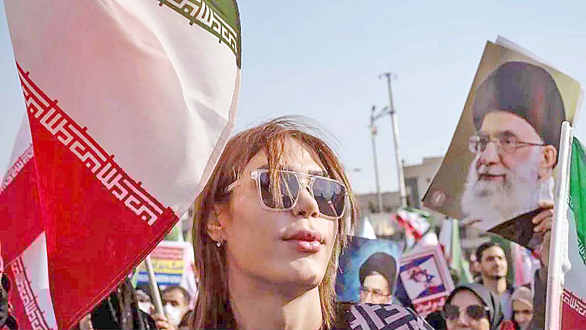 | ইরানের পতাকা হাতে সরকারপন্থীদের বিক্ষোভ। রয়টার্স |