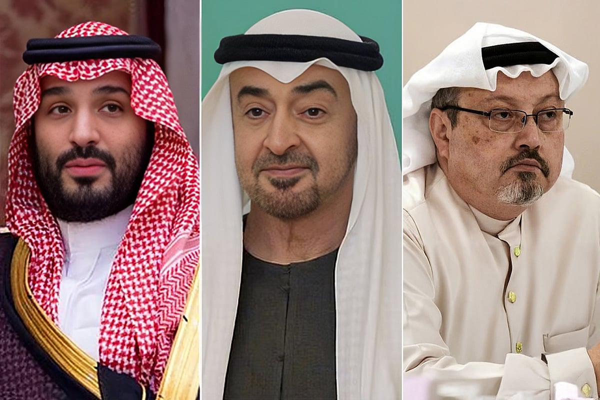 | (বাঁ থেকে) সৌদি আরবের যুবরাজ মোহাম্মদ বিন সালমান, ইউএইর প্রেসিডেন্ট শেখ মোহাম্মদ বিন জায়েদ আল-নাহিয়ান ও প্রয়াত সৌদি সাংবাদিক জামাল খাসোগি। ছবি: কোলাজ/রয়টার্স |