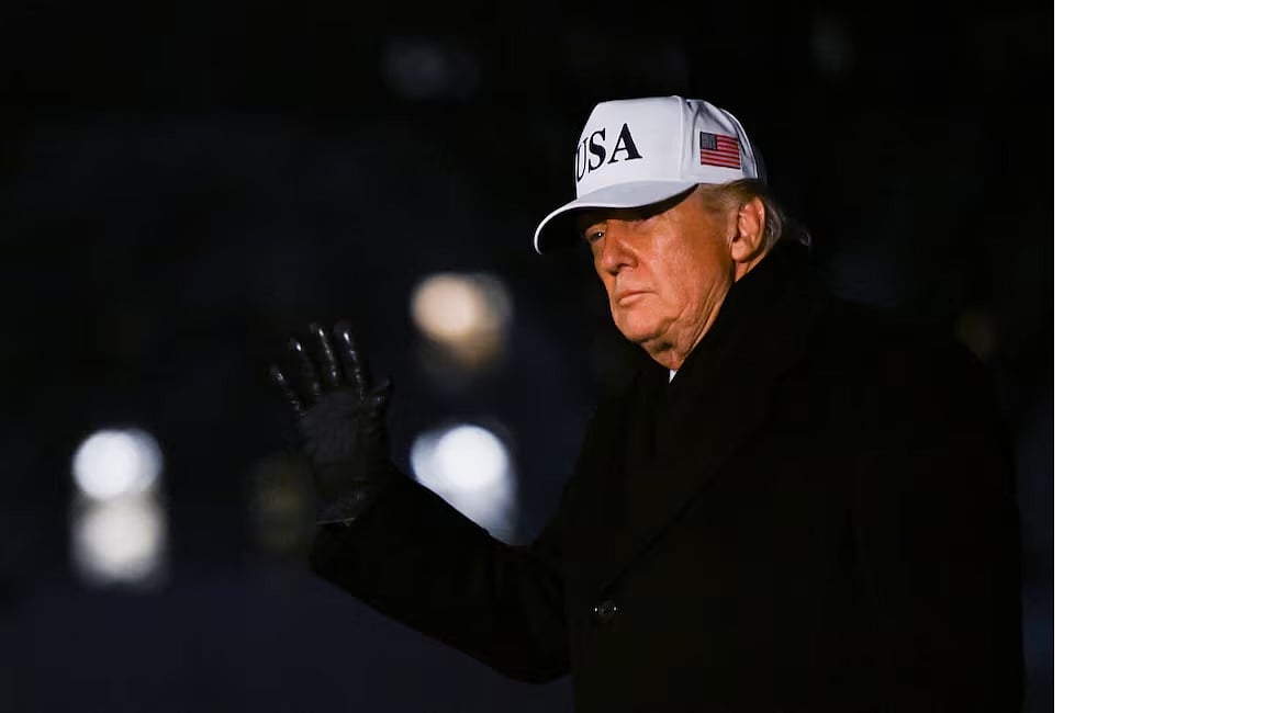 | হোয়াইট হাউসের দক্ষিণ লনে পৌঁছে হাত নেড়ে অভিবাদন জানাচ্ছেন যুক্তরাষ্ট্রের প্রেসিডেন্ট ডোনাল্ড ট্রাম্প। গত ২৭ জানুয়ারি ২০২৬ ছবি: রয়টার্স |