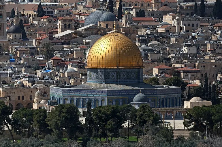 | জেরুজালেমে ‘আল–আকসা’ নামে বেশি প্রসিদ্ধ সোনালি গম্বুজের এ স্থাপনার নাম কুব্বাতুস সাখরা বা ডোম অব দ্য রক ফাইল। ছবি: এএফপি |